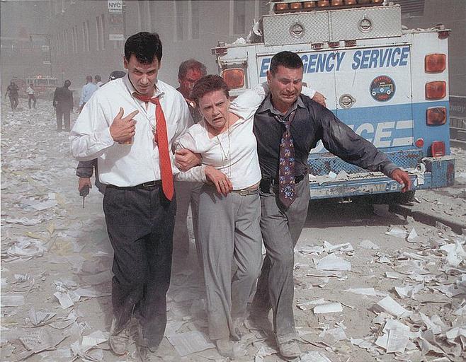 | Keywords: 911 victims helping one another.jpg Deux hommes aident une femme blessée dans une rue jonchée de papiers et de cendres après la chute des tours de la WTC en Two men assisting and walking with an injured woman down a street littered with paper and ashes following the September 11th terrorist attack on the World Trade Center New York City cropped to show the photo only with no border Title Two men assisting and walking with an injured woman down a street littered with paper and ashes following the September 11th terrorist attack on the World Trade Center New York City / Don Halasy Creator s Halasy Don photographer Date Created/Published c2001 Medium 1 photograph digital print inkjet color Reproduction Number LC-DIG-ppmsca-01814 digital file from original Rights Advisory No restrictions on publication For information see Don Halasy http //lcweb loc gov/rr/print/res/286_hala html Call Number LOT 13521-8 no 2 P P Repository Library of Congress Prints and Photographs Division Washington D C 20540 USA Notes Title devised by Library Staff Signed in pencil Inkjet digital print made on Epson Professional Media archival matte paper via scan of an original 35mm film negative Copyright by Don Halasy NY Post Unprocessed in PR 13 CN 2002 076 Don Halasy 247 Subjects World Trade Center New York N Y --Disasters--2000-2010 September 11 Terrorist Attacks 2001 Disaster victims--New York State --New York--2000-2010 Format Inkjet prints--Color--2000-2010 Photographs--Color--2000-2010 Collections Miscellaneous Items in High Demand Part of Photographs from Ground Zero World Trade Center Photo Exhibit held at the Bolivar Arellano Gallery New York City http //lcweb2 loc gov/service/pnp/ppmsca/01800/01814v jpg Don Halasy 09/11/2001 See http //www loc gov/rr/print/res/286_hala html Don Halasy Aftermath of 9/11 in New York City Rescue and recovery effort after the September 11 attacks September 2001 photographs Fashion in 2001 Wounded people Men and women People of the United States in 2001 Helping Side hugs |