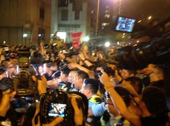| Keywords: 香港各界發起反人大釋法大遊行和集會 91.jpg zh-tw 中 人大常委 11 7日將就香港 年新政兩位議員宣誓風波,對基 法 宣誓 例宣布釋法內容之際,香港民間人權陣線星 天發起各界 反對釋法大遊行 和集 ,抗議人大 香港高等法院審理 宣誓風波司法覆核案 間,主動對基 法第104 釋法,破壞香港獨立的司法制度 香港民陣發起反釋法大遊行後,數以千計的示威 繼續遊行到西環的中聯辦抗議人大釋法 8點半左右,示威 手舉雨傘再次沖擊警方防線,警方則狂噴辣椒噴劑還擊 警方調派大批警員增援,並將配備防暴頭盔的警員派至 線與示威 對峙 警方不斷呼籲示威 持冷 ,不要 擊警方防線,要求示威 盡快離開 9點前, 中聯辦外與警察對峙的示威 突然撤離,輕 西 警署外的徳輔道西和西邊街道口,現場雙向交 中斷, 場自2014年雨傘運動後的佔領行動 醞 中,現場至少 幾千之 十多分鐘後,警方開始廣 播,要求佔路人士離開 示威 9點過後佔據了中聯辦外 段德輔道,並 中聯辦後 外與警方防線展開推撞,警方用辣椒噴 還擊將示威 防線推後 示威 不斷呼喊反對釋法 警方 中聯辦西邊的 光街路口佈署第二道防線,並 警員從路旁的西 警署裡向警察傳遞防暴盾牌 步部署防線 目前還不清楚警方何時清場 2016-11-06 19 51 05 http //www voachinese com/a/hk-protest-20161106/3583208 html 海彥 other versions Custom license marker 2016 11 06 PD-USGov-VOA Occupy Sai Wan |
