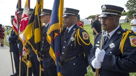 | Keywords: 9-11 ceremony at Fort McHenry 140911-N-WX580-010.jpg en Baltimore City's Honor Guard standby during a 9/11 ceremony held at Fort McHenry in participation of the Star Spangled Spectacular This event celebrates the bicentennial of the Battle of Baltimore which provided the inspiration for Francis Scott Key's famous poem Defence of Fort McHenry which later became America's national anthem More than 30 ships from the U S and foreign nations and the U S Navy's Blue Angels aircraft will be on display and open to the public U S Navy photo by Mass Communication Specialist 2nd Class Lacordrick Wilson/Released 2014-09-11 Petty Officer 3rd Class Lacordrick Wilson https //www dvidshub net/image/1544730 140911-N-WX580-010 2014-09-11 14 54 FORT MCHENRY US PD-USGov-Military-Navy Blue Angels Images from DoD uploaded by Fæ |