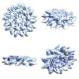 | Keywords: mathematica 3d cg parametricplot3d texture torus 輪環 りんかん ドーナツ どーなつ 六芒星 ろくぼうせい 六光星 六稜星 ろくこうせい ろくりょうせい program プログラム code コード algorithm コード アルゴリズム hexagram geometric sculpture geometricsculpture shape geometry sculpture mapping テクスチャ マッピング 模様 もよう design pattern デザイン パターン graphic グラフィック グラフィクス structure 意匠 構造 symmetry 対称性 たいしょうせい シンメトリー 対称 たいしょう algorithm white background plant blossom SetOptions[ParametricPlot3D, PlotRange -> Full, Mesh -> None, Boxed -> False, Axes -> None, PlotPoints -> 400, ImageSize -> 1000, PlotStyle -> Directive[Specularity[White, 30], Texture[Import["D:/tmp/863.jpg"]]], TextureCoordinateFunction -> ({#4 + #5, #5/Pi} &), Lighting -> "Neutral"]; a = 2; (* center hole size of a torus *) b = 6; (* hexa-torus *) c = 4; (* distance from the center of rotation *) d = 9; (* number of torus *) g[v_] := Sum[Cos[(2 k - 1) v]/(2 k - 1), {k, 4}]; x = (a - g[t] - Sin[b s]) Cos[s + Pi/(2 b)] + c; y = Sin[t] + c; z = (a - g[t] - Sin[b s]) Sin[s + Pi/(2 b)] + c; rot = Table[{x, y, z}.RotationMatrix[2 i Pi/d, {Pi/b, 1, 0}], {i, d}]; ParametricPlot3D[rot, {t, 0, 2 Pi}, {s, 0, 2 Pi}] (*--- The Texture The g[] is a 4-partial sum of the Fourier series for Square wave. g[]は矩形波のフーリエ展開の最初の4項 *) SetOptions[ParametricPlot3D, PlotRange -> Full, Mesh -> None, Boxed -> False, Axes -> None, PlotPoints -> 400, ImageSize -> 1000, PlotStyle -> Directive[Specularity[White, 30], Texture[Import["D:/tmp/863.jpg"]]], TextureCoordinateFunction -> ({#4 + #5, #5/Pi} &), Lighting -> "Neutral"]; a = 2; (* center hole size of a torus *) b = 6; (* hexa-torus *) c = 4; (* distance from the center of rotation *) d = 9; (* number of torus *) g[v_] := Sum[Cos[(2 k - 1) v]/(2 k - 1), {k, 4}]; x = (a - g[t] - Sin[b s]) Cos[s + Pi/(2 b)] + c; y = Sin[t] + c; z = (a - g[t] - Sin[b s]) Sin[s + Pi/(2 b)] + c; rot = Table[{x, y, z}.RotationMatrix[2 i Pi/d, {Pi/b, 1, 0}], {i, d}]; ParametricPlot3D[rot, {t, 0, 2 Pi}, {s, 0, 2 Pi}] (*--- The Texture The g[] is a 4-partial sum of the Fourier series for Square wave. g[]は矩形波のフーリエ展開の最初の4項 *) |