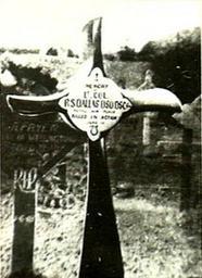 | Keywords: A04844DallasCross.jpg en The cross made from the propeller of an RAF SE 5A aircraft marks the grave of Major Roderick Stanley Stan Dallas No 40 Squadron RAF Born in Queensland Dallas sailed to England at the start of the First World War seeking flight training and after being accepted into the Royal Naval Air Service RNAS was commissioned as a Flight Sub Lieutenant joining No 1 Squadron in December 1915 During his service on the Western Front in 1916 and 1917 he proved himself as an exceptional pilot and on 14 June 1917 he was made Commanding Officer of his Squadron In 1918 after the amalgamation of the two air services to form the Royal Air Force RAF he was transferred to 40 Squadron RAF and held the rank of Major While on a reconnaissance operation Dallas was struck with 3 bullets to his leg after his safe return to base he was awarded the Distinguished Service Order DSO having already been awarded the Distinguished Service Cross DSC and Bar and the French award the Croix de Guerre and Palm Major Dallas was killed in action on 1 June 1918 aged 26 while engaged in combat with Fokker Triplanes over France and is buried at Pérnes British Cemetery Pas de Calais France Major Dallas is officially credited with shooting down thirty nine enemy aircraft A04844 Not stated Donor F Morton ~ 1918 PD-Australia PD-1996 Australia Monuments and memorials of the Royal Air Force Roderic Dallas Black and white photographs No 40 Squadron RAF |