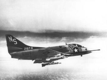| Keywords: A-4B Skyhawk of VA-153 Det.R in flight 1964.jpg A U S Navy Douglas A-4B Skyhawk BuNo 142874 from Attack Squadron VA-153 Det R Blue Tail Flies in flight armed with two AIM-9B Sidewinder missiles VA-153 Det R was assigned to Carrier Anti-Submarine Air Group 53 CVSG-53 aboard the aircraft carrier USS Kearsarge CVS-33 for a deployment to the Western Pacific and Vietnam from 19 June to 16 December 1964 http //collections naval aviation museum/emuwebdoncoms/pages/doncoms/AdvQuery php U S Navy National Museum of Naval Aviation photo No http //collections naval aviation museum/emuwebdoncoms/pages/doncoms/Display php irn 16004515 QueryPage 2Femuwebdoncoms 2Fpages 2Fdoncoms 2FAdvQuery php 1996 253 5246 1964 U S Navy PD-USGov-Military-Navy A-4B Skyhawk in flight Attack Squadron 153 United States Navy AIM-9 Sidewinder |