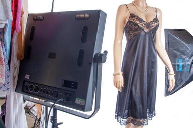 | Keywords: I have always used two soft boxes and a brolly flash for fill-in, but there has always been a shadowy area on the left-hand side of each slip shot, especially if the colour is dark. My photographer hubby just cured that by giving me a surplus Interfit Digitflash 500w monster, the size of a small flat screen tv. Way too powerful, I have to run it at 1/32nd power - its lowest setting - but the result is lovely even lighting all round. Result! | ||||
