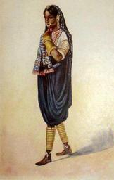| Keywords: A Bhil Girl.jpg en A Rajput lady from Kutch a watercolor by Rao Bahadur M V Dhurandhar 1928; more watercolors from the set A working woman at Ajmere ABengali lady A Bhatia lady A Bhil girl A Bombay lady A Borah lady Surat Born beside the sacred river A Brahman lady From Burmah Cambay type A dancer in Mirzapur A dancer from Tanjore A widow in the Deccan A dyer girl Ahmedabad A fisherwoman Sind A fishwife of Bombay A denizen of the Western Ghauts A gipsy woman A Gond woman A glimpse at a door in Gujarat A Gurkha's wife A Jain nun A lady from Jodhpur In the happy valley of Kashmir A Muslim artisan Kathiawad A Khoja lady Bombay A Mahar woman A Marathi lady A Memon lady walking A lady from Mewar The milkmaid A mill hand A Mussulman lady A Mussulman nautch-girl A Mussulman weaver A lady from Mysore A Nagar beauty A Naikin in Kanara A Nair lady Parsi fashion A Pathan woman A Pathare Prabhu lady A Rajput lady Kutch shown above A Southern India type A sweeper lady A Toda woman in the Nilgiries A lady of the United Provinces Source ebay Aug 2006 1928 http //www columbia edu/itc/mealac/pritchett/00routesdata/1900_1999/drawings/dhurandhar/dhurandhar html creator M V Dhurandhar PD-Art Watercolor paintings of people of India Uploaded with UploadWizard |