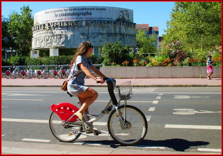 Keywords: vehicle bike sport outdoor Place A.Courtois, Lyon, France (appelée "place des Frêres LUMIERE) Place A.Courtois, Lyon, France (appelée "place des Frêres LUMIERE)