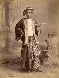 | Keywords: A Burmese man, photograph by Philip Adolphe Klier.jpg Philip Adolphe Klier 1845-1911 Photograph of a Burmese man Burma Myanmar taken by Philip Adolphe Klier in the 1890s In this full-length studio portrait the man is shown posed with hand on hip holding a cigar in his left hand against a painted backdrop of a woodland scene He wears a turban a fur-lined jacket and the man ™s lower garment known as a silk pahso During the Konbaung Dynasty 1752-1885 fine fabrics such as silk and garments such as the jacket were reserved for court officials by sumptuary laws After the fall of the Burmese monarchy they were worn by the wealthy other date s 1890 photograph cm 20 7 27 1 British Library object history credit line accession number http //www bl uk/onlinegallery/onlineex/apac/photocoll/a/019pho0000088s1u00044000 html British Library PD-old-auto-1923 1911 DEFAULTSORT Klier Philip Adolphe; Portrait male Burmese man; British Library Photographs by Philip Adolphe Klier Images from the British Library Ž Men of Myanmar Clothing of Myanmar Longyis Fur fashion in 1895 |