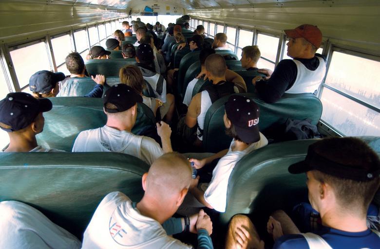 Keywords: A bus full of USN tri-athletes.jpg 031004-N-6967M-004 The finish line wasn't the end-of-the-line for those competing After running swimming and biking their way throughout the Fayetteville area participants still had a 15-20 minute bus ride to get back to Songer Whitewater where the event was being hosted All Hands March 2004 pg 29 Photo by Photographer's Mate 1st Class AW Shane T McCoy RELEASED http //www navy mil/view_ahhphotos asp page 30 Shane T McCoy 2003-10-04 PD-USGov-Military-Navy Photographs by Shane T McCoy US Army triathletes Bus interiors |