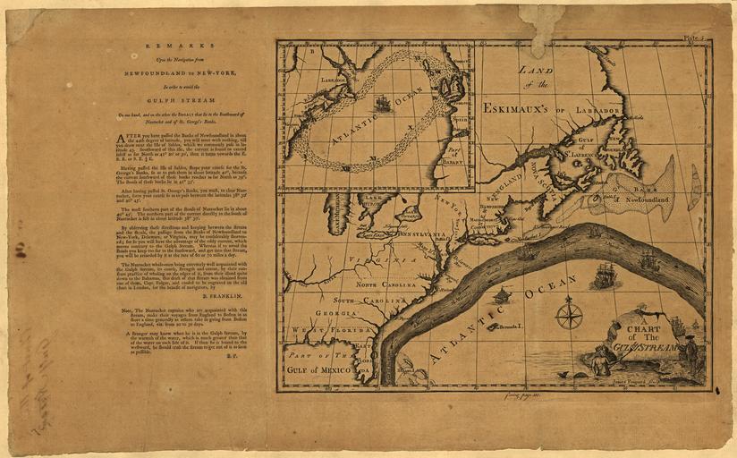 | Keywords: A Chart of the Gulf Stream WDL20.png Artwork ru Попа д Джеймс fr Poupard James en Poupard James zh 普帕尔 詹姆斯 pt Poupard James ar بوبارد جيمس es Poupard James ru Ка та Гольфст има fr Une carte du Gulf Stream en A Chart of the Gulf Stream zh 湾流图 pt Um mapa da Corrente do Golfo ar رسم بياني لتيار الخليج ru Эта ка та составленная филадельфийским г аве ом Джеймсом Попа дом является частью Коллекции Пите а Фо са х анящейся в Библиотеке Конг есса Она была т етьей ка той цикла посвященного Гольфст иму Эта ка та была хо ошо знакома испанским шкипе ам кото ые полагались на нее в плаваниях из Аме ики до Пи енейского полуост ова Униве сальных ка т однако не существовало по п ичине ск ытности испанцев Общий эскиз для этой ка ты был пе воначально составлен Тимоти Фолдже ом ыбаком из онтукета кото ый п иходился двою одным б атом Бенджамину Ф энклину Задумав на исовать ка ту он делал все возможное чтобы п обудить инте ес к изучению Гольфст има Пе вую ка ту Ф анклин издал в 1770-м году и наме евался асп ост анить ее с еди мо еплавателей однако б итанские капитаны скептически относившиеся к колониальным идеям как п авило отказывались п иоб етать копии Во в емя Аме иканской еволюции он п иостановил свою деятельность чтобы не давать англичанам п еимущества но в конце войны о ганизовал вто ое издание во Ф анции В 1786-м году г авю а Попа да была включена в <i>П отоколах Аме иканского философского общества </i>печатном издании пе вого научного общества основанного Ф анклином и д угими видными деятелями в 1743-м году <br>Гольфст им; о ские ка ты; Севе ная часть Атлантического океана fr Cette carte provenant de la collection de cartes Peter Force à la Bibliothèque du Congrès fut créée par le graveur de Philadelphie James Poupard C'était la troisième d'une série présentant une carte du Gulf Stream Ce courant était bien connu des capitaines de navires espagnols qui comptaient sur lui pour naviguer des Amériques à la péninsule Ibérique mais il n'y avait pas de carte universelle à cause du secret espagnol Cette carte fut esquissée initialement par Timothy Folger pêcheur de Nantucket et cousin de Benjamin Franklin qui conçut la carte et promut activement l'étude du Gulf Stream Franklin publia la carte originale en 1770 et chercha à la vendre aux marins mais les capitaines de la marine marchande britannique sceptiques quant aux idées coloniales refusèrent pour la plupart d'en acheter des copies Il suspendit ses efforts pendant la révolution américaine pour éviter d'avantager les Britanniques mais à la fin de la guerre il collabora à un second tirage en France En 1786 la gravure de Poupard parut dans les <em>Transactions de la Société Philosophique Américaine</em> la publication de la première société savante du pays fondée par Franklin et d'autres en 1743 <br>Gulf Stream; Cartes marines; Océan Atlantique Nord en This map from the Peter Force Map Collection at the Library of Congress was created by the Philadelphia engraver James Poupard It was the third in a series featuring a chart of the Gulf Stream The latter was well known to Spanish ship captains who relied on it to sail from the Americas to the Iberian Peninsula but there were no universal charts or maps due to Spanish secrecy This map originally was sketched by Timothy Folger a Nantucket fisherman and a cousin of Benjamin Franklin who conceived the map and actively promoted study of the Gulf Stream Franklin published the original chart in 1770 and sought to distribute it among mariners but British sea captains skeptical of colonial ideas largely refused to purchase copies He suspended his efforts during the American Revolution to avoid giving any advantage to the British but at the end of the war he collaborated on a second printing in France In 1786 Poupard s engraving appeared in the <i>Transactions of the American Philosophical Society</i> the publication of the country s first learned society founded by Franklin and others in 1743 <br>Gulf Stream; Nautical charts; North Atlantic Ocean zh 这幅 图出自美国国会图书馆收藏的 Peter Force 图集,是由费城版画家詹姆斯 普帕德创 的 它是墨西哥湾流图表 图系列中的第三幅 西班牙的船长们对后 常熟悉,他们 赖该 图从美洲航行至伊比利亚半岛,但由于西班牙的 密 以当时并没 用的图表或 图 该 图 是由蒂莫西 福尔 勾勒的草图,他是楠塔基特的 位渔夫,同时也是 明 富兰克林的表兄弟,富兰克林提出了对该 图的构想,并积极推动对墨西哥湾流的研究 1770 年富兰克林出版了 原始的图表,并设法想发给船员,但对殖民 持的 疑 度使多数英国船长拒 购买这些图表 美国 命 间,他暂 了 这方 的工 ,以避免让英国获取任何优势,但 战争结 后他又参与合 , 法国进行了该图表的第二次印刷 1786 年,普帕德的版画 图出现 <i>