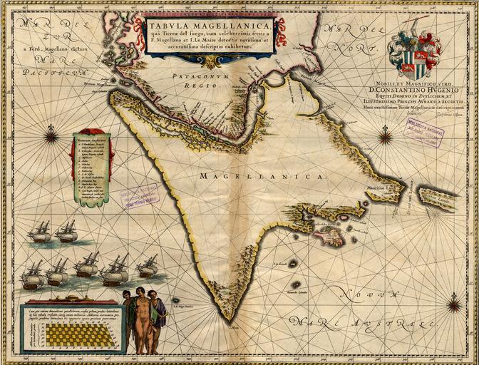 | Keywords: A Chart of Magellan by the Route of Tierra del Fuego WDL3973.png Artwork ru Блау Виллем Янсзон 1571-1638 fr Blaeu Willem Janszoon 1571-1638 en Blaeu Willem Janszoon 1571-1638 zh 布劳 威廉·扬斯宗 1571-1638 pt Blaeu Willem Janszoon 1571-1638 ar بلاو ويليم جانزون 1571-1638 es Blaeu Willem Janszoon 1571-1638 ru Ка та агелланики по пути следования че ез Огненную Землю fr Une carte de Magellan par la route de Terre de Feu en A Chart of Magellan by the Route of Tierra del Fuego zh 幅 经由火 群岛 麦哲伦国的 图 pt Um Gráfico do Estreito de Magalhães pela Rota da Terra do Fogo ar خريطة ماجلان عبرطريق تييرا ديل فويغو ru Эту ка ту агелланики земли к югу от агелланова п олива составил Виллем Янсзон Блау ведущий голландский ка тог аф и издатель ка т а также основатель семьи выдающихся ка тог афов в кото ую входили его сыновья Джоан и Ко нелис Блау одился в иде ландах в 1571 г в 1594 1596 гг он учился в Дании у аст онома Тихо Б аге и сове шенствовал свои навыки по изготовлению инст ументов и глобусов По возв ащении в Амсте дам он основал семейную ка тог афическую компанию В 1608 г он был назначен на должность главного гид ог афа Vereenigde Oost-Indische Compagnie Объединенной Ост-Индской компании кото ую он занимал до самой сме ти в 1638 г Эта ка та 1640 г свидетельствует о специализации Блау в мо ской ка тог афии В нижнем левом углу изоб ажена г уппа из семи плывущих ко аблей помещенных на ка туш в кото ом п иведен масштаб ка ты в немецких милях Ка туш подде живает г уппа из т ех патагонцев В д угих углах ка ты указаны названия Атлантического Тихого и Южного океанов Ка та посвящена Константейну Гюйгенсу ниде ландскому поэту и дипломату кото ый вместе со своим более известным б атом Х истианом отк ывшим спутник Сату на Титан занимался созданием телескопов и изучением небесных светил <br>Отк ытия и исследования; агелланов п олив Чили и А гентина ; Огненная земля А гентина и Чили fr Cette carte de « Magellanica » la terre située au sud du détroit de Magellan est l'œuvre de Willem Janszoon Blaeu un cartographe et éditeur de cartes néerlandais majeur également fondateur d'une famille de cartographes remarquables dont ses fils Joan et Cornelis Né aux Pays-Bas en 1571 Blaeu étudia au Danemark entre 1594 et 1596 auprès de l'astronome Tycho Brahe où il apprit à fabriquer des globes et des instruments De retour à Amsterdam il fonda l'entreprise de cartes familiale En 1608 il fut nommé hydrographe en chef de la Vereenigde Oost-Indische Compagnie la Compagnie néerlandaise des Indes orientales un poste qu'il conserva jusqu'à sa mort en 1638 Cette carte de 1640 reflète la spécialisation de Blaeu dans la cartographie maritime Le coin inférieur gauche montre un groupe de sept bateaux à voile positionnés sur un cartouche à l'intérieur duquel l'échelle figure en miles allemands Le cartouche est porté par un groupe de trois Patagons Les noms des océans australs Atlantique et Pacifique sont indiqués dans l'autre coin de la carte La carte est dédiée à Constantijn Huygens poète et diplomate néerlandais qui avec son frère Christiaan plus célèbre pour avoir découvert Titan le satellite de Saturne se consacrait lui aussi à la fabrication de télescopes et à l'étude des cieux <br>Découverte et exploration; Magellan détroit de Chili et Argentine ; Terre de Feu Argentine et Chili en This map of Magellanica the land south of the Strait of Magellan is by Willem Janszoon Blaeu a leading Dutch cartographer and map publisher and the founder of a family of distinguished mapmakers that included his sons Joan and Cornelis Born in the Netherlands in 1571 between 1594 and 1596 Blaeu studied in Denmark under the astronomer Tycho Brahe where he developed skills as an instrument and globe maker Returning to Amsterdam he founded the family map company In 1608 he was appointed chief hydrographer of the Vereenigde Oost-Indische Compagnie United East Indian Company a position he held until his death in 1638 This 1640 map reflects Blaeu s specialization in maritime cartography The lower left corner depicts a group of seven sailing ships positioned over a cartouche in which the scale is given in German miles The cartouche is supported by a group of three Patagonians The names of the Atlantic Pacific and southern oceans are indicated in the other corners of the map The map is dedicated to Constantijn Huygens a Dutch poet and diplomat who with his more famous brother Christiaan the discoverer of Saturn s moon Titan also built telescopes and studied the skies <br>Discovery and exploration; Magellan Strait of Chile and Argentina ; Tierra del Fuego Argentina and Chile zh 这幅 麦哲伦之 的 图,是 麦哲伦海峡南 的大陆,由威廉·扬斯宗·布劳 绘,他是 名 领先的荷兰制图师和 图出版商,也是包括他的儿子琼和科内利斯 内的 个 出的 图制 家族的创建 1571年生