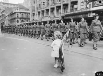 | Keywords: australian war memorial australianwarmemorial child parade australia melbourne victoria world war ii worldwarii second world war secondworldwar awas women army military armed forces armedforces eyes right eyesright australian women's army service australianwomensarmyservice flag patriotism commons:event=commonground2009 парад австралия война ребёнок флаг вторая мировая война втораямироваявойна военные улица патриотизм happy birthday flickr commons” happy birthday flickr commons happybirthdayflickrcommons blackandwhite monochrome black and white ID Number: 136911 Maker: Herald Newspaper Melbourne, Victoria. Members of the Australian Women's Army Service (AWAS) give "eyes right" as they pass the saluting base during the Service Womens march through the city. In the foreground a small girl with an Australian flag over her shoulder watches the march. Rights Info: No known copyright restrictions. This photograph is from the Australian War Memorial's collection www.awm.gov.au Persistent URL:http://cas.awm.gov.au/photograph/136911 ID Number: 136911 Maker: Herald Newspaper Melbourne, Victoria. Members of the Australian Women's Army Service (AWAS) give "eyes right" as they pass the saluting base during the Service Womens march through the city. In the foreground a small girl with an Australian flag over her shoulder watches the march. Rights Info: No known copyright restrictions. This photograph is from the Australian War Memorial's collection www.awm.gov.au Persistent URL:http://cas.awm.gov.au/photograph/136911 |
