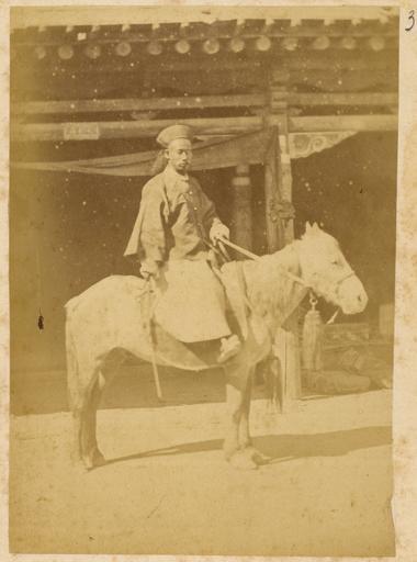 | Keywords: A Chinese Government Officer, Head of Cantonment of Cavalry, in Official Uniform on His Horse. Hubei Province, China, 1874 WDL4139.png Artwork ru Боя ский Адольф- иколай Э азмович fr Boiarskii Adolf-Nikolay Erazmovich en Boiarskii Adolf-Nikolay Erazmovich zh 阿道夫 伊拉莫维奇 鲍 尔斯基 pt Boiarskii Adolf-Nikolay Erazmovich ar أدولف-نيكولاي إرازموفيتش بويارسكي es Boiarskii Adolf-Nikolay Erazmovich ru Китайский госуда ственный служащий глава кавале ийского лаге я одетый в служебную фо му сидит на коне П овинция Хубэй Китай 1874 г fr Fonctionnaire chinois chef du cantonnement de la cavalerie en uniforme officiel sur son cheval Province d'Hubei en Chine 1874 en A Chinese Government Officer Head of Cantonment of Cavalry in Official Uniform on His Horse Hubei Province China 1874 zh 身 官 骑 马上的骑兵统领(清政 官员) 中国湖北 ,1874 年 pt Um oficial do governo chinês chefe do acantonamento da cavalaria vestindo uniforme oficial sobre seu cavalo Província de Hubei China 1874 ar ضابط حكومي صيني، رئيس معسكر سلاح الفرسان، بزيه الرسمي على جواده مقاطعة هوبي، الصين، 1874 ru В 1874 1875 гг оссийское п авительство нап авило в Китай учено-то говую экспедицию с целью поиска новых сухопутных ма ш утов к китайскому ынку оценок возможностей для более активной то говли и для асположений консульств и фаб ик а также сбо а инфо мации о Дунганском восстании бушевавшем в то в емя в западных айонах Китая Экспедиция уководителем кото ой был полковник Гене ального штаба Ю А Сосновский состояла из девяти человек капитана атусовского топог афа докто а Павла Яковлевича Пясецкого научного сот удника пе еводчиков с усского и китайского языков т оих казаков и фотог афа экспедиции Адольфа Э азмовича Боя ского Экспедиция отп авилась из Санкт-Пете бу га в Шанхай че ез Улан-Бато онголия Пекин и Тяньцзинь и затем последовала по ма ш уту вдоль еки Янцзы по Великому шелковому пути п оходя че ез оазис Хами к озе у Зайсан об атно в Россию Боя ский сделал около 200 снимков кото ые легли в основу уникальных мате иалов для изучения Китая того в емени Большая часть фотог афий вошла в этот альбом кото ый позже стал частью коллекции Те езы К истины а ии соб анной импе ато ом Б азилии Пед у II и пе еданной им ациональной библиотеке Б азилии <br>Китайцы; Госуда ственные чиновники; Ве ховая езда; Память ми а; По т етные фотог афии; Династия Цин 1644-1911 гг fr En 1874-1875 le gouvernement russe organisa une mission commerciale et de recherche en Chine Cette mission avait pour objectif de trouver de nouvelles routes terrestres vers le marché chinois d'étudier les perspectives d'une expansion commerciale de rechercher des sites pour l'installation de consulats et d'usines et de recueillir des informations sur la révolte de Dungan qui faisait alors rage dans les provinces de la Chine occidentale Composée de 9 hommes et dirigée par le lieutenant-colonel Iulian A Sosnovskii de l'état-major général de l'armée cette mission comprenait également un topographe le capitaine Matusovskii un responsable scientifique le Dr Pavel Iakovlevich Piasetskii des interprètes chinois et russes trois sous-officiers cosaques et le photographe de la mission Adolf Erazmovich Boiarskii La mission se déroula de Saint-Pétersbourg à Shanghai en passant par Oulan-Bator Mongolie Pékin et Tianjin Elle longea ensuite le fleuve Yangtsé et suivit la grande Route de la soie à travers l'oasis Hami et jusqu'au lac Zaysan de retour en Russie Adolf Erazmovich Boiarskii prit quelque 200 photographies ce qui constitue une source unique pour l'étude de la Chine de cette période La plupart des photographies prises durant cette mission apparaissent dans cet album lequel rejoignit par la suite la collection Thereza Christina Maria rassemblée par l'empereur Pierre II du Brésil qui en fit don à la Bibliothèque nationale du Brésil <br>Chinois; Hauts fonctionnaires; Équitation; Mémoire du monde; Portraits photographiques; Dynastie Qing 1644-1911 en In 1874-75 the Russian government sent a research and trading mission to China to seek out new overland routes to the Chinese market report on prospects for increased commerce and locations for consulates and factories and gather information about the Dungan Revolt then raging in parts of western China Led by Lieutenant Colonel Iulian A Sosnovskii of the army General Staff the nine-man mission included a topographer Captain Matusovskii; a scientific officer Dr Pavel Iakovlevich Piasetskii; Chinese and Russian interpreters; three non-commissioned Cossack soldiers; and the mission photographer Adolf Erazmovich Boiarskii The mission proceeded from Saint Petersburg to Shanghai via Ulan Bator Mongolia Beijing and Tianjin and then followed a route along the Yangtze Ri