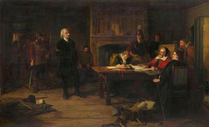 | Keywords: A Conventicle Preacher before the Justices.jpg en Oil on canvas 132 8 x 215 cm Collection Royal Scottish Academy of Art Architecture 1873 “1876 http //www bbc co uk/arts/yourpaintings/paintings/a-conventicle-preacher-before-the-justices-186838 Robert Inerarity Herdman PD-Art Uploaded with UploadWizard History of Scotland Covenanters Robert Herdman |