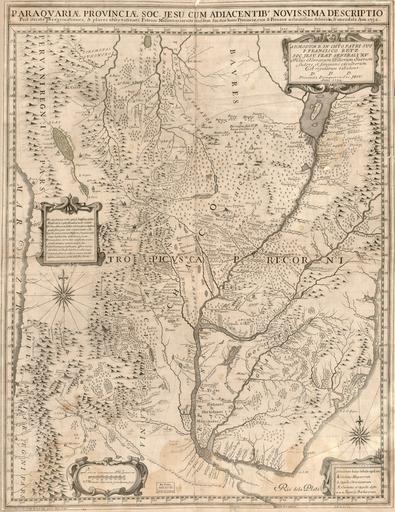 | Keywords: A Current Description of the Province of the Society of Jesus in Paraguay with Neighboring Areas WDL2581.png Artwork ru Рец Ф анциско fr Retz Francisco en Retz Francisco zh 瑞兹 弗 西斯科 pt Retz Francisco ar ريتز فرانسيسكو es Retz Francisco ru Сов еменное описание п овинции Общества Иисуса в Па агвае с п илегающими те ито иями actuelle de la province de la Société de Jésus au Paraguay avec les régions avoisinantes of the Province of the Society of Jesus in Paraguay with Neighboring Areas zh 巴拉 和邻国 区 稣会教 的当前描述 pt Uma Descrição Atual da Província da Companhia de Jesus no Paraguai com Áreas Vizinhas ar وصف حالي لمحافظة جمعية يسوع في باراغواي مع المناطق المجاورة ru В пе иод между 1609 и 1780 годами Римско-католический о ден Иисуса иезуиты основал автономное х истианское индейское госуда ство на те ито ии сов еменного Па агвая У угвая и некото ых егионов А гентины и Б азилии После неудачных попыток об ащения в х истианство воинственных индейцев гуайку у на севе о-востоке Па агвая иезуиты сос едоточили свои основные усилия на о ганизации поселений для индейцев гуайку у в виде <i> reducciones </i> небольших го одов или поселков в кото ых они вели общинный об аз жизни Основание небольших поселений было попыткой исп авить п ежние ошибки и несп аведливое об ащение с индейцами Па агвая кото ые находились фактически на положении абов вынужденных аботать на испанских поселенцев а этой ка те 1732 года составленной на латинском языке с указанием некото ых геог афических названий на испанском языке изоб ажена иезуитская п овинция Па агвая а также местоположение основных миссий и ма ш уты миссионе ов Ка та была изготовлена в Риме Джованни Пет осчи 1715-1766 гг и посвящена Ф анциско Рец 1673-1750 гг главе о дена иезуитов В 1993 году уины иезуитских миссий Ла-Сантисима-Т инидад-де-Па ана и Хесус-де-Тава анге в Па агвае были включены в список памятников Всеми ного наследия Ю ЕСКО <br>Иезуиты; Южная Аме ика fr Entre 1609 et 1780 la Société catholique romaine de Jésus Jésuites établit un État indien chrétien autonome sur le territoire de l'actuel Paraguay l'Uruguay et sur des territoires de l'Argentine et du Brésil Après l'échec de leurs efforts pour évangéliser les Indiens guerriers Guaycurú du nord-est du Paraguay les Jésuites se sont consacrés à rassembler les indiens guarani Indiens au sein de plusieurs <i>reducciones</i> réductions ou communes dans lesquelles fut pratiquée une sorte de vie communautaire L'objectif du système des réductions était de corriger les abus antérieurs ayant conduit à réduire en quasi-esclavage les indiens du Paraguay obligés de travailler pour les colons espagnols Cette carte de 1732 en latin avec quelques noms de lieux en espagnol représente la province jésuite du Paraguay indiquant les principales missions et les expéditions des missionnaires La carte a été dessinée à Rome par Giovanni Petroschi 1715-66 et est dédiée à Francisco de Retz 1673-1750 Supérieur général de la Société de Jésus En 1993 les ruines des missions jésuites de la Santísima Trinidad de Paraná et de Jesús de Tavarangue au Paraguay ont été incrites au Patrimoine mondial de l'UNESCO <br>Jésuites; Amérique du Sud en Between 1609 and 1780 the Roman Catholic Society of Jesus the Jesuits established an autonomous Christian Indian state on the territory of present-day Paraguay Uruguay and parts of Argentina and Brazil After unsuccessful efforts to Christianize the warlike Guaycurú Indians of northeastern Paraguay the Jesuits concentrated on organizing the Guaraní Indians into a series of <i>reducciones</i> reductions or townships in which a kind of communal living was practiced The system of reductions was an attempt to correct earlier abuses in which the Paraguayan Indians were transformed into virtual slaves who were compelled to work for the Spanish settlers This map of 1732 in Latin with some place names in Spanish depicts the Jesuit province of Paraguay showing the main missions and missionary journeys The map was made in Rome by Giovanni Petroschi 1715-66 and is dedicated to Francisco Retz 1673-1750 Superior General of the Society of Jesus In 1993 the ruins of the Jesuit missions of La Santísima Trinidad de Paraná and Jesús de Tavarangue in Paraguay were named UNESCO World Heritage Sites <br>Jesuits; South America zh 1609 至 1780 年间,罗马天主教 稣会( 稣会) 今巴拉 乌拉 和阿根廷和巴西部分 区的领 上建立了 个基 教印第安人自治州 将巴拉 北部好战的 Guaycurú 印第安人基 化 出的努力失败之后, 稣会集中精力将 Guaycurú 印第安人组织为 系列 <i>reducciones</i> (小 区或 乡镇),其中实行了共同生活制度 这种小 区体系试图纠正早 的虐待行为, 那里巴拉 印第安人被转化为虚拟奴隶,被迫为西班牙殖民 