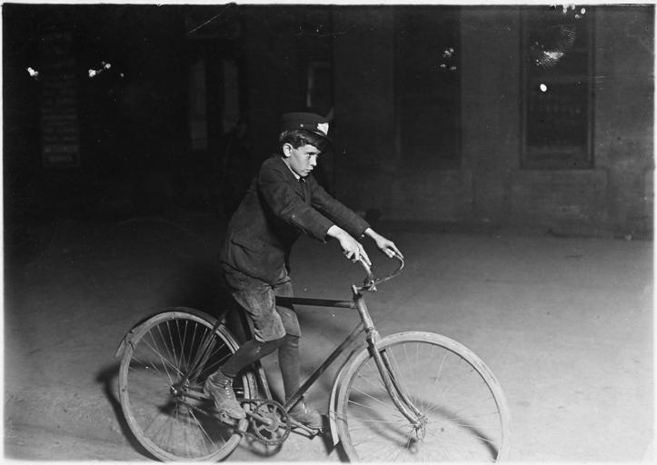Keywords: nara:arcid=523085 u.s. national archives usnationalarchives lewis hine lewishine blackandwhite monochrome vehicle bike black and white Original Caption: A.D.T. Messenger Boy. 10 P.M. Indianapolis, Ind, August 1908 U.S. National Archives’ Local Identifier: 102-LH-117 Photographer: Hine, Lewis Subjects: Child Labor National Child Labor Committee Working Conditions Factory Persistent URL: research.archives.gov/description/523085 Repository: Still Picture Records Section, Special Media Archives Services Division (NWCS-S), National Archives at College Park, 8601 Adelphi Road, College Park, MD, 20740-6001. For information about ordering reproductions of photographs held by the Still Picture Unit, visit: www.archives.gov/research/order/still-pictures.html Reproductions may be ordered via an independent vendor. NARA maintains a list of vendors at www.archives.gov/research/order/vendors-photos-maps-dc.html Access Restrictions: Unrestricted Use Restrictions: Unrestricted Original Caption: A.D.T. Messenger Boy. 10 P.M. Indianapolis, Ind, August 1908 U.S. National Archives’ Local Identifier: 102-LH-117 Photographer: Hine, Lewis Subjects: Child Labor National Child Labor Committee Working Conditions Factory Persistent URL: research.archives.gov/description/523085 Repository: Still Picture Records Section, Special Media Archives Services Division (NWCS-S), National Archives at College Park, 8601 Adelphi Road, College Park, MD, 20740-6001. For information about ordering reproductions of photographs held by the Still Picture Unit, visit: www.archives.gov/research/order/still-pictures.html Reproductions may be ordered via an independent vendor. NARA maintains a list of vendors at www.archives.gov/research/order/vendors-photos-maps-dc.html Access Restrictions: Unrestricted Use Restrictions: Unrestricted |