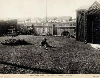 | Keywords: archives state records nsw staterecordsnsw newsouthwales blackandwhite daceyville suburb garden suburb gardensuburb sydney backyard children public housing publichousing outdoor black and white A well kept back yard, Dacey Garden suburb Dated: 1918 Digital ID: 5225_a018_a018000074 Rights: www.records.nsw.gov.au/about-us/rights-and-permissions We'd love to hear from you if you use our photos. From a series of photographs of 'Dacey Garden Suburb' (Daceyville) - a development by the Housing Board of NSW as Sydney's "first planned modern garden suburb". Daceyville was developed between 1913 and 1918 and is located in south-eastern Sydney within the municipalities of Mascot and Botany. The images in the series show scenes of the area before development, road building, the types of houses built, shops, as well as the Public School. The suburb was named after the state parliamentarian John Rowland Dacey who played a vital role in the approval of this urban development. Many other photos in our collection are available to view and browse on our website using Photo Investigator. A well kept back yard, Dacey Garden suburb Dated: 1918 Digital ID: 5225_a018_a018000074 Rights: www.records.nsw.gov.au/about-us/rights-and-permissions We'd love to hear from you if you use our photos. From a series of photographs of 'Dacey Garden Suburb' (Daceyville) - a development by the Housing Board of NSW as Sydney's "first planned modern garden suburb". Daceyville was developed between 1913 and 1918 and is located in south-eastern Sydney within the municipalities of Mascot and Botany. The images in the series show scenes of the area before development, road building, the types of houses built, shops, as well as the Public School. The suburb was named after the state parliamentarian John Rowland Dacey who played a vital role in the approval of this urban development. Many other photos in our collection are available to view and browse on our website using Photo Investigator. |