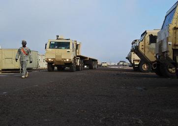 | Keywords: A Day in the Life of an 'Iron Eagle' transportation Non-Commissioned Officer DVIDS145298.jpg en Sgt Craig Priest transportation non-commissioned officer Company A 404th Aviation Support Battalion Combat Aviation Brigade 4th Infantry Division Multi-National Division - Baghdad from Georgetown S C guides the driver of an M1088 Tractor Truck out of his company's motorpool during the start of his platoon's 500th cargo transportation mission at Camp Taji Jan 12 At any given time the platoon has M1088 Tractor Trucks ready to roll Each of the platoon's trucks are equipped with large flatbed trailers capable of hauling anywhere from 22 to 34 tons of conventional or containerized cargo within the confines of the camp 2009-01-18 Spc Jason Dangel https //www dvidshub net/image/145298 145298 2009-01-18 09 24 CAMP TAJI IQ PD-USGov Camp Taji Images from DoD uploaded by Fæ M1088 Medium Tactical Vehicle |