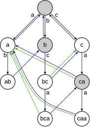 | Keywords: A diagram of the Aho-Corasick string search algorithm.svg Uploaded with en wp UW marker 2012 08 16 This is a diagram of the data structure used by the Aho-Corasick algorithm a trie with two extra types of arcs added It's an SVG file that I created from scratch with InkScape and release into the public domain own 2012-08-15 Algorithmist with Inkscape and an imbedded raster graphic<br/> Recreate from scratch Fred the Oyster with Adobe Illustrator Adobe Other fields A + Diagrams I created this entirely myself published it nowhere and hereby release it into the public domain cc-zero Search algorithms Images created by Fred the Oyster |