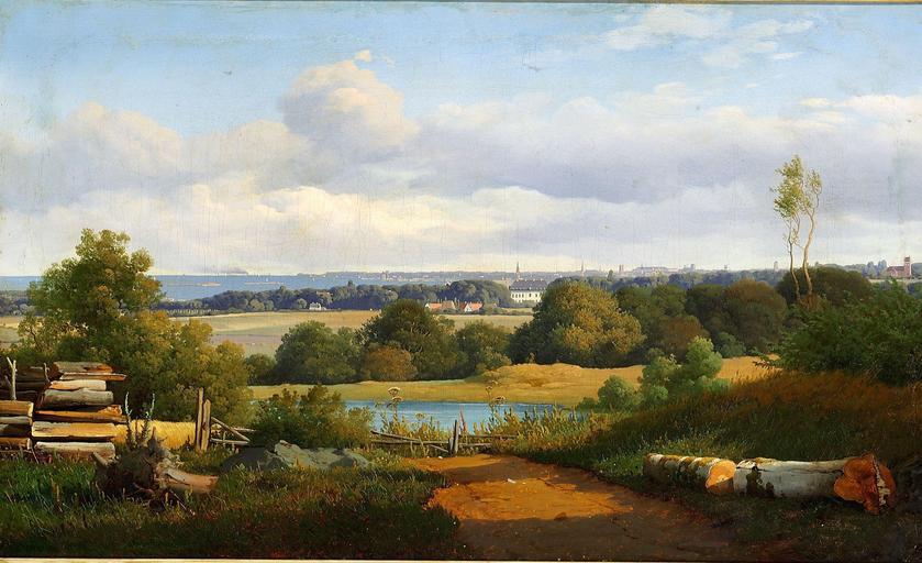 | Keywords: A. E. Kieldrup - Parti fra Ermelunden....jpg Anton Eduard Kieldrup 1826-1869 da Parti fra Ermelunden med udsigt til Gentofte Kirke Bernstorff Slot og København oil canvas cm 42 69 object history credit line accession number https //sites google com/site/maleriermm/ sites google com PD-Art Paintings by Anton Eduard Kieldrup 19th-century landscape paintings Denmark in art Paintings of Copenhagen Gentofte Kirke Bernstorff Slot Gentofte Kommune in art Paintings of churches in Denmark | ||||