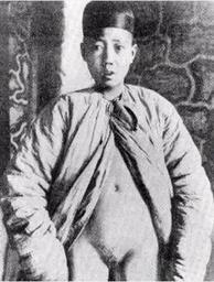 | Keywords: A eunuch of Qing Dynasty.JPG en A eunuch of the Qing Dynasty China zh 清 宦官 K Chimin Wong 王吉民 and Wu Lien-teh 伍 德 History of Chinese Medicine Being a Chronicle of Medical Happenings in China from Ancient Times to the Present Period Second edition Shanghai National Quarantine Service 1936 plate XIX after p 202 Original caption A young eunuch undressed to show site of castration taken in Peking 1901 Online source http //www usrf org/news/010308-eunuchs_china html Unknown 1901 PD-old-100 PD-China Chinese eunuchs People of the Qing Dynasty |
