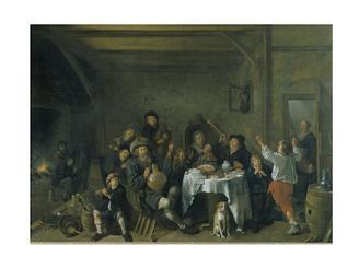 | Keywords: A Family Merrymaking.jpg en A domestic interior in which a peasants family drink eat and entertain themselves with music In the centre is a table covered by a white linen on which food items had been displayed before it is a dog and tow men on the far left are lighting their pipes by the fireplace s 1640 painted http //collections vam ac uk/item/O80748/oil-painting-a-family-merrymaking/ Molenaer Jan Miense born 1605 - died 1668 painter artist PD-Art Uploaded with UploadWizard Parties in art Jan Miense Molenaer |