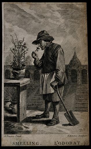 Keywords: A gardener smelling a flower; representing the sense of smel Wellcome V0007698.jpg Artwork Creator David Teniers II A gardener smelling a flower; representing the sense of smell Etching by T Kitchin after D Teniers <p>Iconographic Collections<br> Keywords David Teniers; Thomas Kitchin Library reference ICV No 7919 Photo number V0007698 Full Bibliographic Record http //catalogue wellcomelibrary org/record b1184998 object history exhibition history credit line Wellcome Images http //wellcomeimages org/indexplus/obf_images/f8/b6/6f408f6ed4f272be309d852191c0 jpg Gallery http //wellcomeimages org/indexplus/image/V0007698 html accession number PD-old-auto-1923 1784 Images uploaded by Fæ Wellcome V0007698 jpg Files from Wellcome Images check needed V0007698 jpg Works after David Teniers the Younger Thomas Kitchin Etchings in the Wellcome Collection |