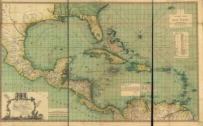 | Keywords: A General Chart of the West Indies- With Additions from the Latest Navigators WDL21.png Artwork ru Шпее Джозеф Смит fr Speer Joseph Smith en Speer Joseph Smith zh 斯佩尔 约瑟夫·史密斯 pt Speer Joseph Smith ar سبير جوزيف سميث es Speer Joseph Smith ru Общая ка та Вест-Индии С дополнительными сведениями последних мо ских путешествий fr Une carte générale des Indes occidentales avec des ajouts des tout derniers navigateurs en A General Chart of the West Indies With Additions from the Latest Navigators zh 西印度群岛 海图 添加了 新航海家的资料 pt Um mapa geral das Índias Ocidentais Com atualizações dos mais recentes navegadores ar رسم بياني عام لجزر الهند الغربية مع إضافات من آخر الملاحين ru Капитан Джозеф Смит Спи был английским мо еплавателем п ослужившим 21 год на побе ежье оскито искито те ито ии нынешней ика агуа Впоследствии он составил под обные ка ты Вест-Индии опи аясь на собственное знание егиона В 1776-м году он опубликовал <i> Путеводитель по Вест-Индии </i> состоявший из 13 ка т; дополненное издание соде жавшее 26 ка т вышло в свет в 1771-м году <i>П едставленная здесь Общая ка та Вест-Индии </i>п едставляет собой под обную ка ту к упного азме а 71 на 117 см Составлена по более анней ве сии 1774-го года с дополнениями внесенными сов еменными мо еплавателями Английские ф анцузские голландские и датские те ито ии п иведены и обозначены азличными цветами В состав Соединенных Штатов обозначенных зеленым цветом еще не входит Фло ида и те ито ии к западу от иссисипи <br>Ка ибский егион; Вест-Индия fr Le Capitaine Joseph Smith Speer était un marin anglais qui servit pendant 21 ans sur la côte des Mosquitos dans ce qui est aujourd'hui le Nicaragua Il créa ensuite des cartes détaillées des Antilles basées sur ses connaissances personnelles de cette région En 1766 il publia <em>The West-India Pilot Le pilote des Antilles </em>qui contenait 13 cartes suivi d'une édition amplifiée contenant 26 cartes en 1771 Cette carte générale des Indes occidentales est une grande carte détaillée 71 sur 117 centimètres Elle est basée sur une carte antérieure datant de 1774 « avec des ajouts des tout derniers navigateurs » Les territoires anglais français espagnols néerlandais et danois y sont indiqués et représentés par des couleurs différentes Les États-Unis en vert ne comprennent pas encore la Floride ni aucun territoire à l'ouest du Mississippi <br>Région des Caraïbes; Antilles en Captain Joseph Smith Speer was an English mariner who served 21 years on the Mosquito Miskito Coast in what is now Nicaragua He later created detailed maps of the West Indies based on his first-hand knowledge of the region In 1766 he published <em>The West-India Pilot</em> containing 13 maps followed by an enlarged edition with 26 maps in 1771 <em>A General Chart of the West Indies</em> shown here is a large detailed map 71 by 117 centimeters It is based on an earlier map from 1774 with Additions from the latest Navigators English French Spanish Dutch and Danish territories are listed and coded with different colors The United States shown in green does not yet include Florida or any territory west of the Mississippi <br>Caribbean Area; West Indies zh 约瑟夫·斯密斯·施瑟佩尔船长是 名英国籍的海员, 莫斯基托海岸(米斯基托)工 了21年 后 他根据自己对该 区了解的第 手资料绘制了很多西印度群岛的详细 图 1766 年,他出版了 <i> 西印度群岛领航员 ,</i> 其中共包含 13 张 图,随后 1771 年的扩充版共包含 26 张 图 <i>这里展示的 西印度群岛 图 </i>是 张 常详细的大型 图(71 厘米乘以 117 厘米) 这幅 图主要基于1774年后早 的 幅 图, 将 自领航员的 新信息补充了进去 英国 法国 西班牙 荷兰和丹麦的领 各自用不同的 色标识了出 美国则用绿色标识的,佛罗里达州和密西西比河以西的 方没 包含进去 <br>加勒比海 区; 西印度群岛 pt O Capitão Joseph Smith Speer era um marinheiro inglês que serviu 21 anos na Costa dos Mosquitos Misquito onde hoje fica a Nicarágua Mais tarde ele criou mapas detalhados das Índias Ocidentais com base em seu conhecimento pioneiro sobre a região Em 1766 ele publicou <em>O Piloto das Índias Ocidentais</em> contendo 13 mapas seguido por uma edição ampliada com 26 mapas em 1771 <em>Um mapa geral das Índias Ocidentais</em> mostrado aqui é um mapa grande e detalhado 71 por 117 centímetros Ele está baseado em um mapa anterior de 1774 com atualizações dos mais recentes navegadores Os territórios ingleses franceses espanhóis holandeses e dinamarqueses estão listados e codificados em cores diferentes Os Estados Unidos mostrados em verde não incluem ainda a Flórida nem qualquer território a oeste do Mississipi <br>Região do Caribe; Índias Ocidentais ar كان الكابتن جوزيف سميث سبير ملاحا إنجليزيا خدم لمدة 21 سنة على ساحل الموسكيتو ميسكيتو في ما يُعرف بنيكاراغوا حاليا وأنتج في وقت لاحق خرائط تفصيلية لجزر الهند الغربية مبنية على معرفته المباشرة ع