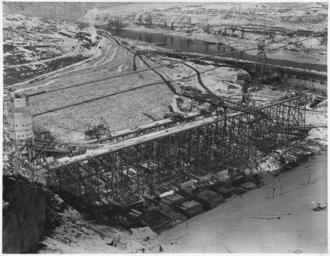 | Keywords: A general view looking north across the west side showing the westmix concrete plant, placing trestles and crane... - NARA - 294229.tif Scope and content Photograph from Volume Two of a series of photo albums documenting the construction of the Grand Coulee Dam and related work on the Columbia Basin Project General notes 294229 Local identifier Department of the Interior Bureau of Reclamation Engineering and Research Center 05/18/1981 - 03/04/1988 NARA's Rocky Mountain Region Denver NRGA Building 48 Denver Federal Center West 6th Avenue and Kipling Street Denver CO 80225-0307 1936-01-28 Record group Record Group 115 Records of the Bureau of Reclamation 1889 - 2008 Record group ARC 444 Photograph albums compiled 1903 - 1972 Series ARC 293611 File unit File unit ARC Variant control numbers NAIL Control Number NRG-115-CONSTPHO85006-COLBASIN2959 yes Other versions <gallery> File A general view looking north across the west side showing the westmix concrete plant placing trestles and crane - NARA - 294229 jpg jpg </gallery> NARA-cooperation PD-USGov Construction of the Grand Coulee Dam Concrete plants Cranes Concrete dams Cofferdams NARA TIF images with categorized JPGs |