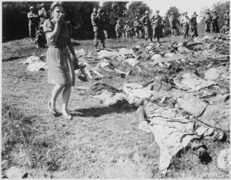 | Keywords: A German girl is overcome as she walks past the exhumed bodies of some of the 800 slave workers murdered by SS guards... - NARA - 531343.tif Scope and content General notes Use War and Conflict Number 1124 when ordering a reproduction or requesting information about this image 531343 Local identifier 111-SC-264895 Department of Defense Department of the Army Office of the Chief Signal Officer 09/18/1947 - 02/28/1964 Still Picture Records Section Special Media Archives Services Division NWCS-S National Archives at College Park 8601 Adelphi Road College Park MD 20740-6001 1945-05-17 Record group Record Group 111 Records of the Office of the Chief Signal Officer 1860 - 1985 Record group ARC 440 Signal Corps Photographs of American Military Activity compiled 1754 - 1954 Series ARC 530707 File unit File unit ARC Variant control numbers NAIL Control Number NWDNS-111-SC-264895 yes Other versions NARA-cooperation PD-USGov Forced labour in Nazi Germany Body parts of murdered during the Holocaust The Holocaust mass graves |