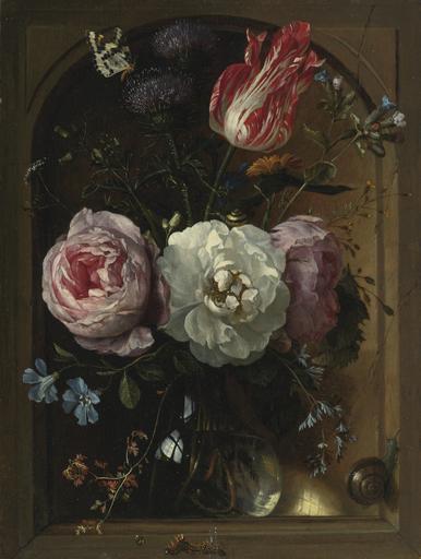 Keywords: A glass vase of flowers including roses, a tulip, and thistles with snails, a butterfly, and a caterpillar.jpg Artwork en A glass vase of flowers including roses a tulip and thistles with snails a butterfly and a caterpillar oil on panel Size cm 26 3 20 object history exhibition history credit line place of creation PD-old-100 http //www sothebys com/content/dam/stb/lots/N09/N09161/101N09161_76V7P jpg accession number Uploaded with UploadWizard Jan Davidsz de Heem |