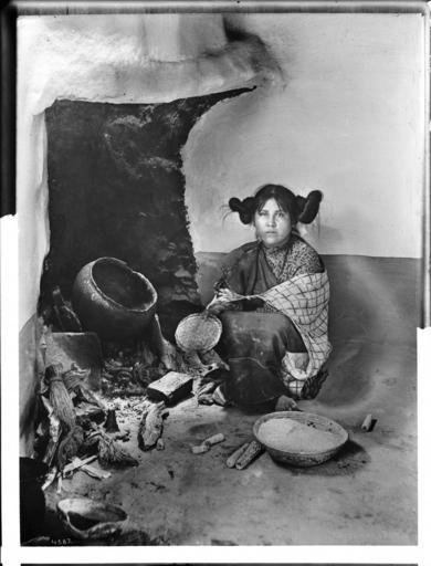 | Keywords: A Hopi maiden drying corn meal at a fireplace at Mishongnovi (Mashonguavi) or Oraibi, Arizona, 1898 (CHS-4587).jpg Second Mesa or Oraibi Arizona 1898 She wears a long dress with shawl around her shoulders Her hair is tied into flat buns on each side of her head She is crouching beside the hearth which is situated in a corner of the house A basket of corn meal sits on the dirt floor with several ears of corn ---- Call number CHS-4587 Legacy record ID chs-m16918; USC-1-1-1-13518 Photographer James George Wharton Filename CHS-4587 Coverage date 1898 Part of collection California Historical Society Collection 1860-1960 Type images Geographic subject city or populated place Mishongnovi Repository name USC Libraries Special Collections Accession number 4587 Microfiche number 1-168- Archival file chs_Volume96/CHS-4587 tiff Part of subcollection Title Insurance and Trust and C C Pierce Photography Collection 1860-1960 Repository address Doheny Memorial Library Los Angeles CA 90089-0189 Geographic subject country USA Format aacr2 3 photographs glass photonegative photoprints b w ; 22 x 17 cm 26 x 21 cm 21 x 16 cm Rights Digitally reproduced by the USC Digital Library; From the California Historical Society Collection at the University of Southern California Subject adlf tribal areas Project USC Repository email specol usc edu Identifying number unidentified no James-42 Contributing entity California Historical Society Date created 1898 Publisher of the digital version University of Southern California Libraries Format aat photographic prints; photographs Geographic subject state Arizona Subject file heading Indians -- Hopi -- General Geographic coordinates -110 491943 35 805000; -110 639717 35 876389; -110 639442 35 876389; -110 639442 35 874722; -110 639717 35 874722; -110 639717 35 876389 Format glass plate negatives Geographic subject tribal areas Hopi Reservation Access conditions Send requests to address or e-mail given Phone 213 821-2366; fax 213 740-2343 Geographic subject county Navajo Subject lcsh Indians of North America; Hopi Indians 1898 date created George Wharton James 1858 1923 http //digitallibrary usc edu/cdm/ref/collection/p15799coll65/id/16840 PD-old-70-1923 Hopi women Fireplaces in Arizona Hopi Hopi architecture ˘ Building interiors in Arizona Hopi Second Mesa Arizona Interior 19th-century women of the United States Arizona in the 1890s Black and white photographs of Arizona Images from USC Digital Library uploaded by Fæ Photographs by George Wharton James Hopi California Historical Society Collection 1860-1960 Glass plate negatives |