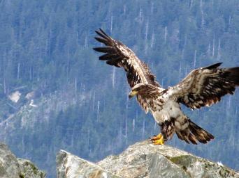 A-juvenile-bald-eagle-landing-on-a-rock.jpg (1280x960)