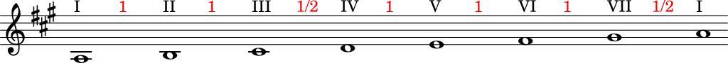 Keywords: A major scale with degrees and tones.svg en A major scale with degrees and tones fr Gamme de la majeur avec ses degrés et l'indication des tons 2014-03-01 11 12 14 own Romainbehar LilyPond source <pre> \version 2 16 2 \new Staff \with \remove Time_signature_engraver \set Score defaultBarType empty \clef treble \key a \major a1 \markup I \once \override NoteHead 'transparent t d \markup \with-color red 1 b1 \markup II \once \override NoteHead 'transparent t d \markup \with-color red 1 cis'1 \markup III \once \override NoteHead 'transparent t d \markup \with-color red 1/2 d'1 \markup IV \once \override NoteHead 'transparent t d \markup \with-color red 1 e'1 \markup V \once \override NoteHead 'transparent t d \markup \with-color red 1 fis'1 \markup VI \once \override NoteHead 'transparent t d \markup \with-color red 1 gis'1 \markup VII \once \override NoteHead 'transparent t d \markup \with-color red 1/2 a'1 \markup I </pre> cc-zero Uploaded with UploadWizard Musical scales GNU LilyPond images |