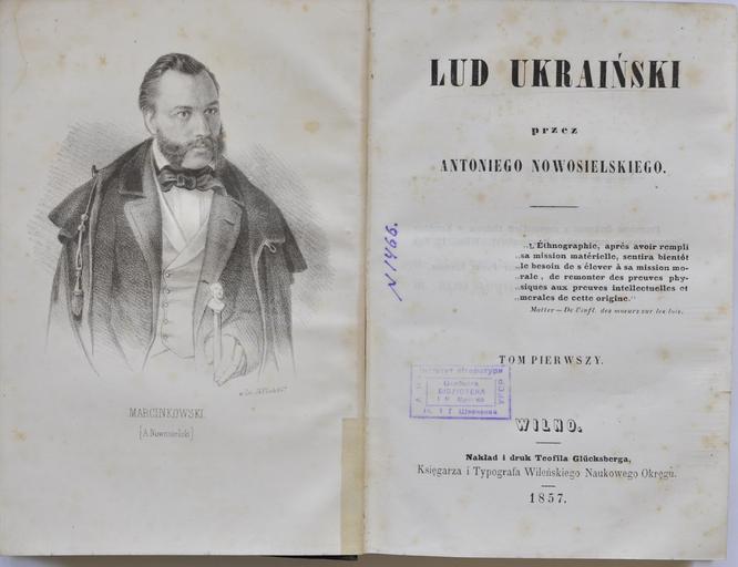 | Keywords: A. Martsinkovskiy about ukrainian people 1639.jpg Антоні Альбе т а цінковський Люд ук аїнський Вільно 1857 Ф онтиспіс та титульний а куш З особистої бібліотеки І Ф анка Antony Martsinkovskiy about ukrainian people Vilnius 1857 Frontispiece and title page From I Franko personal Library 1857 Institution Shevchenko Institute of Literature Digital Collection PD-old-70-1923 1857 book covers Franko Personal Library Libraries in Ukraine Collections of books in libraries in Ukraine Uploaded with VicuñaUploader |