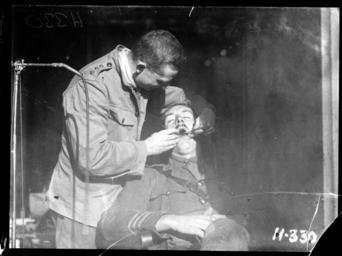 | Keywords: the great war thegreatwar great war greatwar world war one worldwarone world war i worldwari wwi first world war firstworldwar new zealand expeditionary force newzealandexpeditionaryforce nzef dentist nielles blackandwhite monochrome photo border black and white A dentist from the New Zealand Dental Corps carrying out a dental inspection on a patient in the operating room of the Corps dental hospital in Nielles, France, during World War I. Photograph taken November 1917 by Henry Armytage Sanders. Inscriptions: Inscribed - Photographer's title on negative -bottom right: H330. Quantity: 1 b&w original negative(s). Physical Description: Dry plate glass negative 3.25 x 4.25 inches A New Zealand Dental Corps dentist carrying out an inspection during World War I. Royal New Zealand Returned and Services' Association :New Zealand official negatives, World War 1914-1918. Ref: 1/4-009513-G. Alexander Turnbull Library, Wellington, New Zealand. natlib.govt.nz/records/22790157 A dentist from the New Zealand Dental Corps carrying out a dental inspection on a patient in the operating room of the Corps dental hospital in Nielles, France, during World War I. Photograph taken November 1917 by Henry Armytage Sanders. Inscriptions: Inscribed - Photographer's title on negative -bottom right: H330. Quantity: 1 b&w original negative(s). Physical Description: Dry plate glass negative 3.25 x 4.25 inches A New Zealand Dental Corps dentist carrying out an inspection during World War I. Royal New Zealand Returned and Services' Association :New Zealand official negatives, World War 1914-1918. Ref: 1/4-009513-G. Alexander Turnbull Library, Wellington, New Zealand. natlib.govt.nz/records/22790157 |
