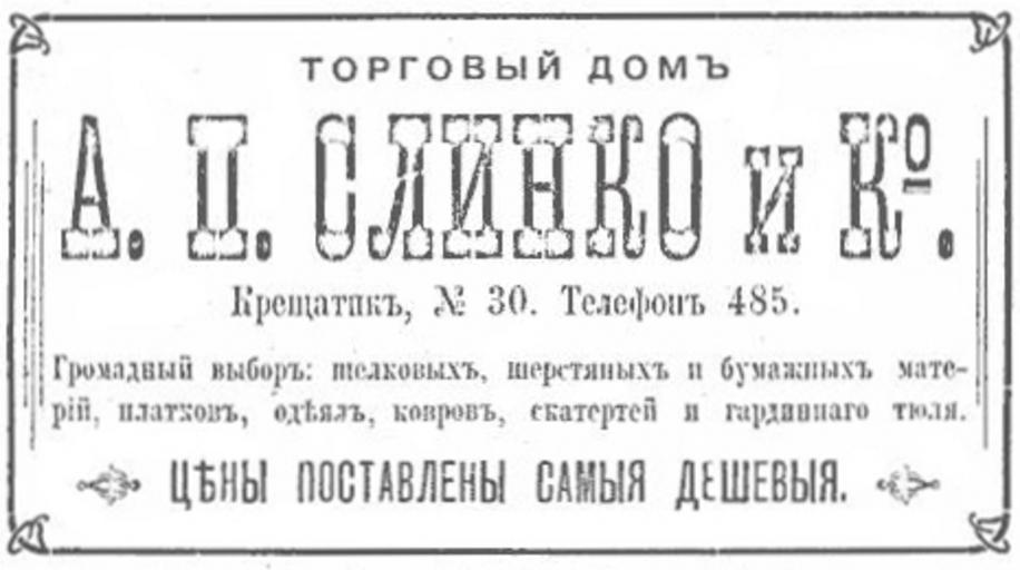 | Keywords: A. P. Slinko trading house advertisement.jpeg ru Рекламное объявление то гового дома А П Слинко и Ко 1909 Памятная книжка Киевской губе нии на 1909 год author Custom license marker 2013 12 15 PD-RusEmpire Uploaded with UploadWizard Advertisements in Russia 1909 advertisements |
