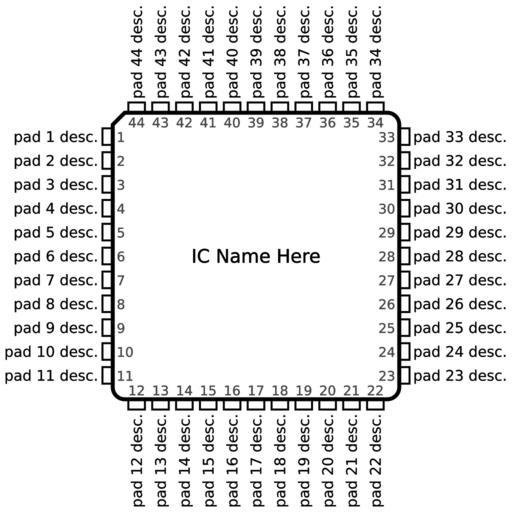 Keywords: A QFP44 Template.svg en A template for 44 pin qfp packaged ICs 2012-05-01 own Aflafla1 Uploaded with UploadWizard IC pinout diagrams