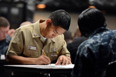 | Keywords: A Sailor takes his advancement exam. (8407483271).jpg YOKOSUKA Japan Jan 17 2012 Hospital Corpsman 1st Class Markant Castelo assigned to U S Naval Hospital Yokosuka takes the Navy-wide chief petty officer advancement exam the base enlisted club at Fleet Activities Yokosuka The exam assesses a Sailor's knowledge of in-rate training and professional military knowledge U S Navy photo by Mass Communication Specialist 3rd Class Declan Barnes/Released 130117-N-TG831-018 Join the conversation http //www facebook com/USNavy www facebook com/USNavy http //www twitter com/USNavy www twitter com/USNavy http //navylive dodlive mil navylive dodlive mil https //www flickr com/photos/usnavy/8407483271/ A Sailor takes his advancement exam 2013-01-17 09 18 https //www flickr com/people/56594044 N06 Official U S Navy Page from United States of America PD-USNavy Official U S Navy Imagery https //flickr com/photos/56594044 N06/8407483271 2016-12-14 05 01 52 United States Government Work Military training Files from the U S Navy Flickr stream Files uploaded by Reguyla People of the United States Navy |