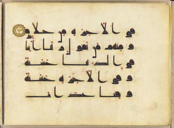 | Keywords: A section of the Koran - Google Art Project.jpg Ink color gold parchment cm 24 50 33 Institution Freer Gallery of Art Not on view object history credit line accession number sQFqqi8kY7dZbA PD-old-100 verify this seems to be F1937 6 http //www asia si edu/exhibitions/online/islamic/calligraphy2b htm Other page Google Art Project works in Freer Gallery of Art Smithsonian Islamic manuscripts in Freer Gallery of Art Qur'an manuscripts 10th century Qur'an manuscripts 9th century Google Art Project works by unknown artist |