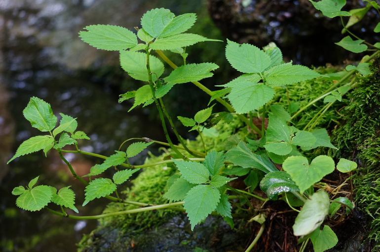 Keywords: blades brown compost damp daytime dirt ferns green greenery ground jungle leaf leaves moist mud muddy outdoors outside puddle rocks soil stem stones stream sunlight surface trees veins water wet