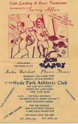 | Keywords: todd lindberg toddlindberg gucci promotions guccipromotions ron hardy ronhardy andre hatchett andrehatchett pharris thomas pharristhomas hyde park athletic club hydeparkathleticclub chicago house music chicagohousemusic Todd Lindberg & Gucci Promotions RETURN WITH A Spring Affair LIVE AND JACKIN' SATURDAY, APRIL 5TH .... FEATURING .... THE GUCCI ELITE RON HARDY Andre Hatchett Pharris Thomas BRINGING YOU A NON-STOP MUSICAL EXTRAVAGANZA! AT THE Hyde Park Athletic Club 1301 EAST 47TH STREET (RIGHT OFF LAKE PARK) 8 PM – 2AM: $5.00 ALSO ... THE REAL BIRTHDAY CELEBRATION OF ANDRE HATCHETT HAPPY BIRTHDAY ANDRE FOR THE SERIOUS AND ELITE PARTY PEOPLE A 1986 GUCCI PROMOTION FOR MORE INFO: 324-2589 SAT. APRIL 5TH SAT. APRIL 5TH FREE REFRESHMENTS LIVE AND JACKIN' VIDEO SHOW! Todd Lindberg & Gucci Promotions RETURN WITH A Spring Affair LIVE AND JACKIN' SATURDAY, APRIL 5TH .... FEATURING .... THE GUCCI ELITE RON HARDY Andre Hatchett Pharris Thomas BRINGING YOU A NON-STOP MUSICAL EXTRAVAGANZA! AT THE Hyde Park Athletic Club 1301 EAST 47TH STREET (RIGHT OFF LAKE PARK) 8 PM – 2AM: $5.00 ALSO ... THE REAL BIRTHDAY CELEBRATION OF ANDRE HATCHETT HAPPY BIRTHDAY ANDRE FOR THE SERIOUS AND ELITE PARTY PEOPLE A 1986 GUCCI PROMOTION FOR MORE INFO: 324-2589 SAT. APRIL 5TH SAT. APRIL 5TH FREE REFRESHMENTS LIVE AND JACKIN' VIDEO SHOW! |