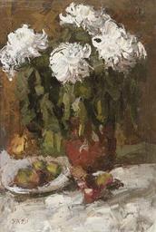 Keywords: A still life with flowers and fruits, Sa Dji. Dutch (1915 - 2005) art-call Artistically