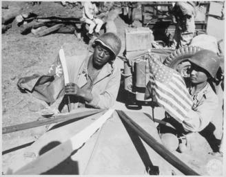| Keywords: A U.S. Army soldier and a Chinese soldier place the flag of their ally on the front of their jeep just before the first... - NARA - 535573.tif Local identifier 208-AA-338A-1 Office for Emergency Management Office of War Information Overseas Operations Branch New York Office News and Features Bureau 12/17/1942 - 09/15/1945 Still Picture Records Section Special Media Archives Services Division NWCS-S National Archives at College Park 8601 Adelphi Road College Park MD 20740-6001 1945-02-06 Record group Record Group 208 Records of the Office of War Information 1926 - 1951 Record group ARC 535 Photographs of the Allies and Axis compiled 1942 - 1945 Series ARC 535523 Variant control numbers NAIL Control Number NWDNS-208-AA-338A-1<br /> Select List Identifier AFRO/AM LIST 10 General notes Scope and content File unit File unit ARC yes <gallery> File A_U S _Army_soldier_and_a_Chinese_soldier_place_the_flag_of_their_ally_on_the_front_of_their_jeep_just_before_the_first _-_NARA_-_535573 tif tif File A_U S _Army_soldier_and_a_Chinese_soldier_place_the_flag_of_their_ally_on_the_front_of_their_jeep_just_before_the_first _-_NARA_-_535573 jpg jpg </gallery> NARA-cooperation PD-USGov China in World War II World War II forces of the United States in India Chinese American history NARA TIF images with categorized JPGs |