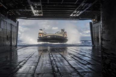 | Keywords: A U.S. Navy landing craft, air cushion assigned to Assault Craft Unit 5 approaches the well deck of the amphibious assault ship USS Peleliu (LHA 5) after a training exercise in support of Rim of the Pacific 140625-N-SU278-012.jpg en A U S Navy landing craft air cushion assigned to Assault Craft Unit 5 approaches the well deck of the amphibious assault ship USS Peleliu LHA 5 after a training exercise in support of Rim of the Pacific RIMPAC 2014 in the Pacific Ocean June 25 2014 RIMPAC is a U S Pacific Fleet-hosted biennial multinational maritime exercise designed to foster and sustain international cooperation on the security of the world's oceans 2014-06-25 MC3 Will Gaskill http //www defenseimagery mil/imageRetrieve action guid be5f41485d245402e545f322b4a7215d4946a8f4 t 2 Public domain photograph from defenseimagery mil http //www defenseimagery mil/imagery html guid be5f41485d245402e545f322b4a7215d4946a8f4 140625-N-SU278-012 2014-06-26 USS Peleliu LHA 5 PD-USGov-Military-Navy Aboard USS Peleliu LHA-5 RIMPAC 2014 Images from DoD uploaded by Fæ |