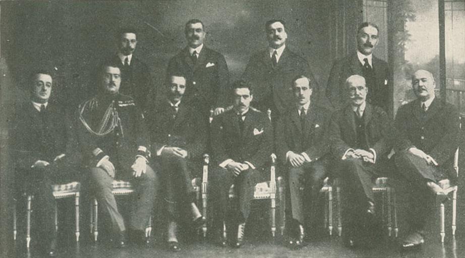 Keywords: A última fotografia do Ministério Domingos Pereira - Ilustração Portugueza (22Mar1920).png en Last group photograph of the Portuguese cabinet 1920 led by Domingos Pereira Standing Messrs João de Deus Ramos Melo Barreto Castro Ribeiro e Jorge Nunes Sitting Messrs Ramada Curto Hélder Ribeiro Mesquita de Carvalho Domingos Pereira António Fonseca Celestino d'Almeida e José Barbosa pt Última fotografia de grupo do Ministério português 1920 chefiado por Domingos Pereira Em pé os Srs João de Deus Ramos Melo Barreto Castro Ribeiro e Jorge Nunes Sentados os Srs Ramada Curto Hélder Ribeiro Mesquita de Carvalho Domingos Pereira António Fonseca Celestino d'Almeida e José Barbosa 1920-03 http //hemerotecadigital cm-lisboa pt/OBRAS/IlustracaoPort/1920/N735/N735_item1/P8 html Hemeroteca Digital - Ilustração Portuguesa 2 ª série n º 735 22 de Março de 1920 author other versions Custom license marker 2016 09 29 PD-old-75 1920 in Portugal 1920 portrait photographs Group photographs of men wearing lounge suits Politicians of the Portuguese First Republic Group photographs of sitting people Photographs of sitting men Black and white photographs in the 1920s Black and white photographs of groups Group portraits with 11 persons 20th-century group portrait photographs Black and white portrait photographs in Portugal Celestino de Almeida |