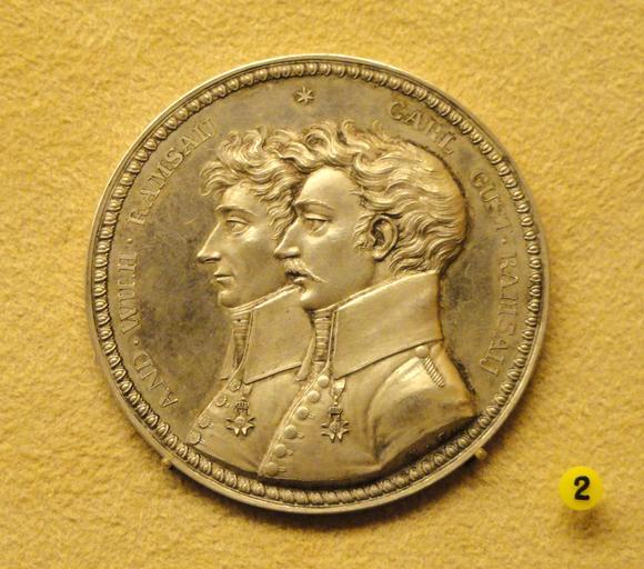 | Keywords: A. W. and C. G. Ramsay, killed in action 1808, engraved in Stockholm in 1811 by Carl Enhorning - National Museum of Finland - DSC04161.JPG en Coin / medal in the National Museum of Finland Helsinki Finland Photography was permitted in the museum without restriction This artwork is in the public domain because the artist s died more than 70 years ago Daderot 2012-08-14 08 49 59 Daderot cc0 cc0 Coins and medals in the National Museum of Finland Carl Enhörning | ||||