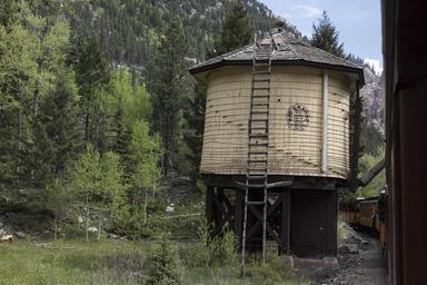 | Keywords: A water tank along the route of the Durango & Silverton Narrow Gauge Railroad (D&SNG) in San Juan County, Colorado LCCN2015632962.tif 1 photograph digital tiff file color Notes The D SNG operates 45 2 miles of track between Durango and Silverton in southwest Colorado The route was originally opened in 1882 by the Denver Rio Grande Railway note that the water tank carries that line's logo to transport silver and gold ore mined from the San Juan Mountains The line has run continuously since 1881 and some rolling stock dates to then It is now strictly a tourist and heritage line hauling passengers and is one of the few places in the United States that has seen continuous use of steam locomotives In March 1981 the Denver Rio Grande Western sold the line and the D SNG was formed Trains operate from Durango just 26 miles into the mountains in winter months and the full 45 miles to Silverton during warmer months ; Forms part of Gates Frontiers Fund Colorado Collection within the Carol M Highsmith Archive ; Credit line Gates Frontiers Fund Colorado Collection within the Carol M Highsmith Archive Library of Congress Prints and Photographs Division ; Title date and keywords based on information provided by the photographer ; Purchase; Carol M Highsmith Photography Inc ; 2015; DLC/PP-2015 068 2015 Creator Carol M Highsmith Library of Congress Catalog http //lccn loc gov/2015632962 Image download https //cdn loc gov/master/pnp/highsm/32900/32947a tif Original url http //hdl loc gov/loc pnp/highsm 32947 No known restrictions on publication LOC-image highsm 32947 PD-Highsmith Images uploaded by Fæ Gates Frontiers Fund Colorado Collection within the Carol M Highsmith Archive Durango and Silverton Narrow Gauge Railroad Gates Frontiers Fund Colorado Collection within the Carol M Highsmith Archive Library of Congress Prints and Photographs Division Photographs by Carol M Highsmith |