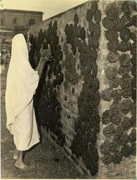 | Keywords: A woman drying cow-dung to be used as fuel in Calcutta in 1945.jpg Patty-cake Annie is the nickname tagged to the makers of India's most plentiful fuel by American Soldiers who must indulge their sense of humor The sun-baked cow-dung patties are used by the poorer classes who cannot afford scarce wood for fuel to heat their homes and cook their food The South Asia Section of the Van Pelt Library University of Pennsylvania recently acquired from a bookdealer a photograph album consisting of 60 photographs of Calcutta taken most likely between 1945-1946 The photographer Mr Clyde Waddell also provided the interesting glosses accompanying each photograph Several attested copies of this work has emerged including one with a 'title page' held by the Southeastern Louisiana University in Hammond Louisiana Mr Waddell was a military photographer Many of his captions sound like annotations that would be found in a typical military magazine The album begins with several general long shots of Calcutta and ends with a picture of dhobi-s washermen washing clothes The text accompanying the last photograph also sounds as if the author intended to finish with that picture of one of the great mysteries of India The annotations have been included because of their intrinsic interest not only to the photographs but to a 'typical' American impression of India at this time 1945 http //www library upenn edu/collections/sasia/calcutta1947/ Clyde Waddell other versions PD-USGov Van Pelt Library University of Pennsylvania - Clyde Waddell Calcutta 1940's photos People of Kolkata Dry animal dung fuel in India Uploaded with UploadWizard Cow dung fuel |