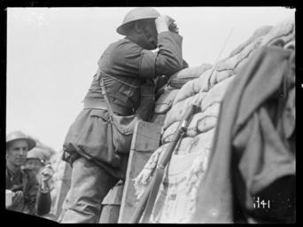 | Keywords: blackandwhite monochrome sculpture photo border outdoor black and white A New Zealand Brigade Commander, identified as Brigadier General Harry Townsend Fulton, looks through binoculars at the German position from a front line trench on Hill 63, near Messines, during World War I. Photograph taken May 1917 by Henry Armytage Sanders. Inscriptions: Inscribed - Photographer's title on negative -bottom right: H41. Quantity: 1 b&w original negative(s). Physical Description: Dry plate glass negative 3.25 x 4.25 inches A World War I Brigade Commander looks at the German line near Messines. Royal New Zealand Returned and Services' Association :New Zealand official negatives, World War 1914-1918. Ref: 1/4-009463-G. Alexander Turnbull Library, Wellington, New Zealand. natlib.govt.nz/records/23075680 A New Zealand Brigade Commander, identified as Brigadier General Harry Townsend Fulton, looks through binoculars at the German position from a front line trench on Hill 63, near Messines, during World War I. Photograph taken May 1917 by Henry Armytage Sanders. Inscriptions: Inscribed - Photographer's title on negative -bottom right: H41. Quantity: 1 b&w original negative(s). Physical Description: Dry plate glass negative 3.25 x 4.25 inches A World War I Brigade Commander looks at the German line near Messines. Royal New Zealand Returned and Services' Association :New Zealand official negatives, World War 1914-1918. Ref: 1/4-009463-G. Alexander Turnbull Library, Wellington, New Zealand. natlib.govt.nz/records/23075680 |