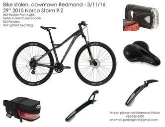 | Keywords: norco storm 9.2 storm92 stolen bike stolenbike redmond, wa redmondwa drawing cartoon Seattle area friends, Hubby's bike was stolen on Friday. Please share anywhere and everywhere. Seattle area friends, Hubby's bike was stolen on Friday. Please share anywhere and everywhere. |