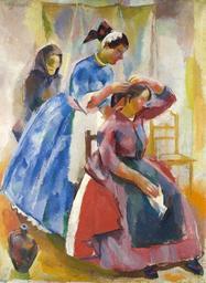 | Keywords: Aba-Novák Dressing 1927.jpg Artwork Creator Vilmos Aba-Novák 1927 Oil on canvas Size cm 91 123 Private collection object history http //www nagyhazi hu/szakvelemenyek php msz 138 ksz 415 Szakvélemény Nagyházi Galéria és Aukciósház exhibition history credit line top left Aba - Novák accession number http //www nagyhazi hu/english/index php nagyhazi hu http //www nagyhazi hu/tetelek_kereses php msz 138 tid 27315 tp 20 page 1296 Info http //axioart com/images/live_images/original/491/36 jpg Pic PD-old-70 Paintings by Vilmos Aba-Novák in private collections 1927 paintings Dressing in art 20th-century oil on canvas paintings 20th-century oil paintings of women at full length |